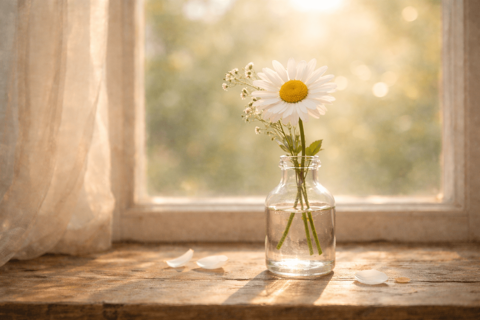 Pick one flower you love, put it in a clear glass, and place it somewhere you will see it often. Let it be a small anchor for your attention.